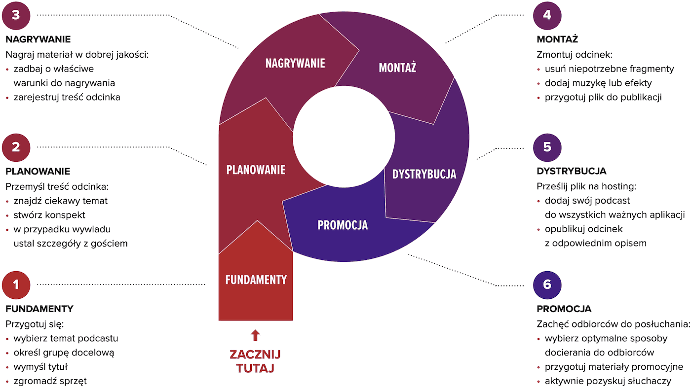 Potrzebujesz wiedzy i sprawdzonej ścieżki, która krok po kroku przeprowadzi Cię przez nawet bardziej skomplikowane techniczne rzeczy. Od wyboru mikrofonu, po szybki i łatwy montaż, na promocji odcinka kończąc.
